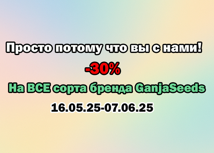 Акция продлена! GanjaSeeds продолжает дарить скидку –30% на ВСЕ сорта бренда ещё на неделю — до 7 июня включительно!