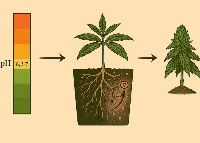 pH почвы или питательного раствора — это не мелочь, а фактор, который напрямую определяет, будет ли фосфор доступен для растения или останется бесполезной добавкой. Для каждого способа выращивания каннабиса существуют свои оптимальные диапазоны кислотности.