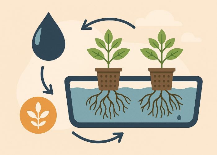 Благодаря рециркуляции раствора система значительно снижает расход воды и удобрений по сравнению с традиционными методами полива. Раствор используется повторно, что уменьшает затраты на питание растений и снижает экологическую нагрузку.