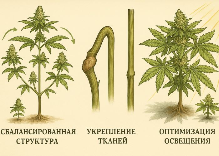 Также важно исключить любые внешние или внутренние источники стресса. Если растение недавно было пересажено, болеет, испытывает нехватку питательных веществ или просто выглядит вялым — не стоит спешить с суперкроппингом. В таком состоянии оно не сможет адекватно отреагировать на механическое вмешательство, и результат может быть обратным: задержка роста, снижение активности побегов, деформация стебля.