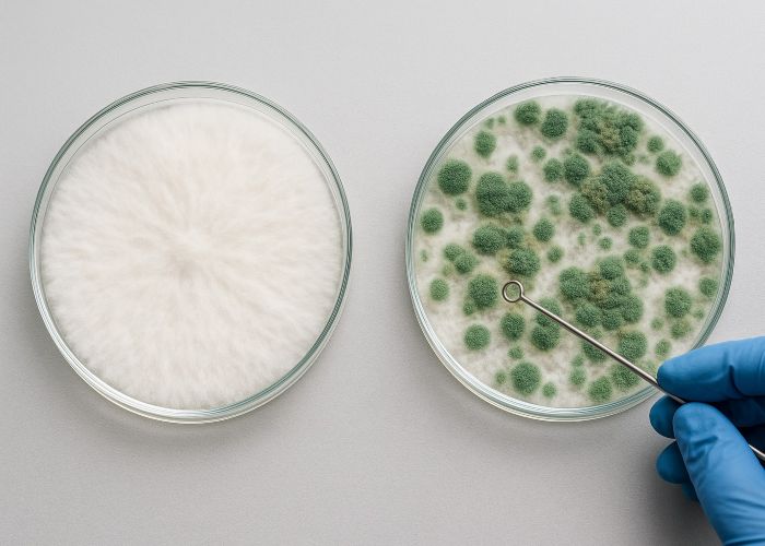 Особенность этих спор — их живучесть. Они устойчивы к ультрафиолету, перепадам температур, сушке и даже некоторым дезинфицирующим растворам. В замкнутых пространствах, особенно в плохо вентилируемых инкубаторах, одна спора может стать началом всей колонии. Именно поэтому так важно не только соблюдать стерильность, но и относиться к каждому этапу как к потенциальной точке входа угрозы.
